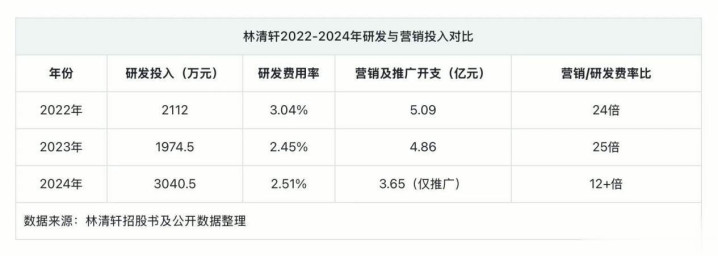 与之形成对比的是,仅2024年一年,林清轩的营销及推广开支就高达3.65亿元,是其研发投入的12倍以上。当高昂溢价的支撑主要来源于营销叙事,而非持续的科技创新时,其品牌故事的长期可信度与可持续性难免遭受质疑。
