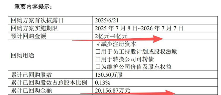 在行业另一端,AI芯片公司寒武纪在2025年6月做出一个引人注目的决定:将股份回购的价格上限,从每股不超过297.77元,大幅上调至不超过818.87元。 这种近乎翻倍的上调回购价上限行为,强烈地暗示公司管理层认为当前股价远未能反映其内在价值。 尽管二级市场波动剧烈,但产业资本的行动却显示出另一种基于长期技术的价值判断。